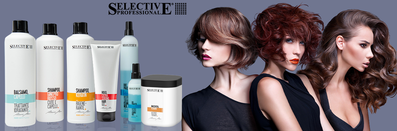 състои от следните продукти:1. Кератинов шампоан за суха и увредена коса Selective
